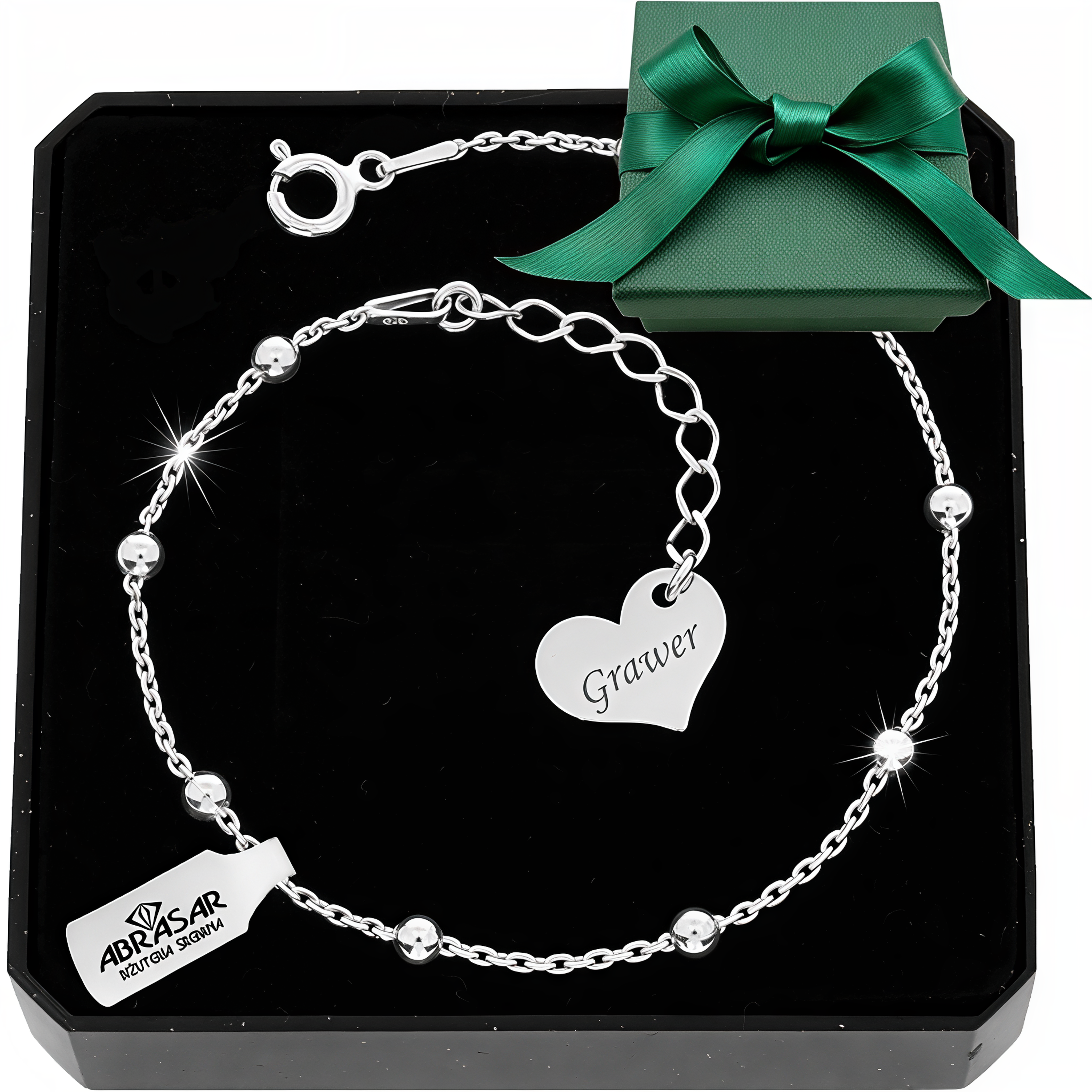 SREBRNA BRANSOLETKA KULKI + SERCE GRAWER pr.925