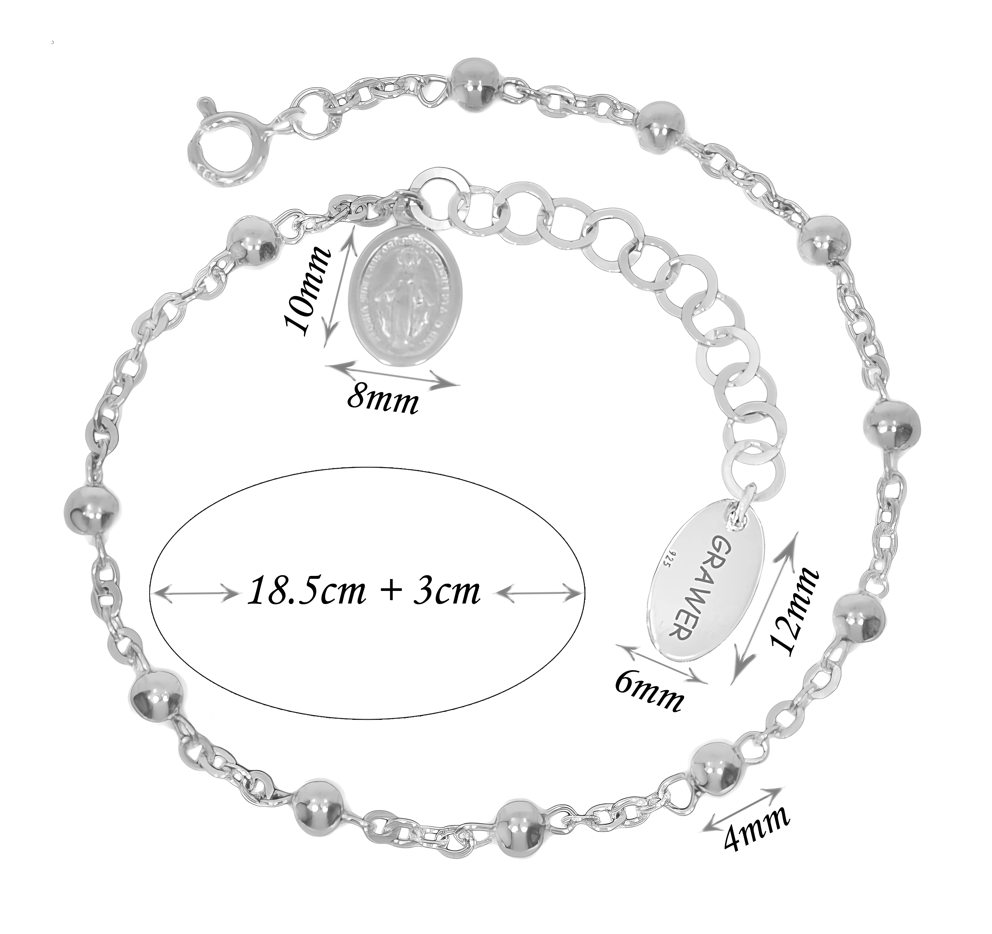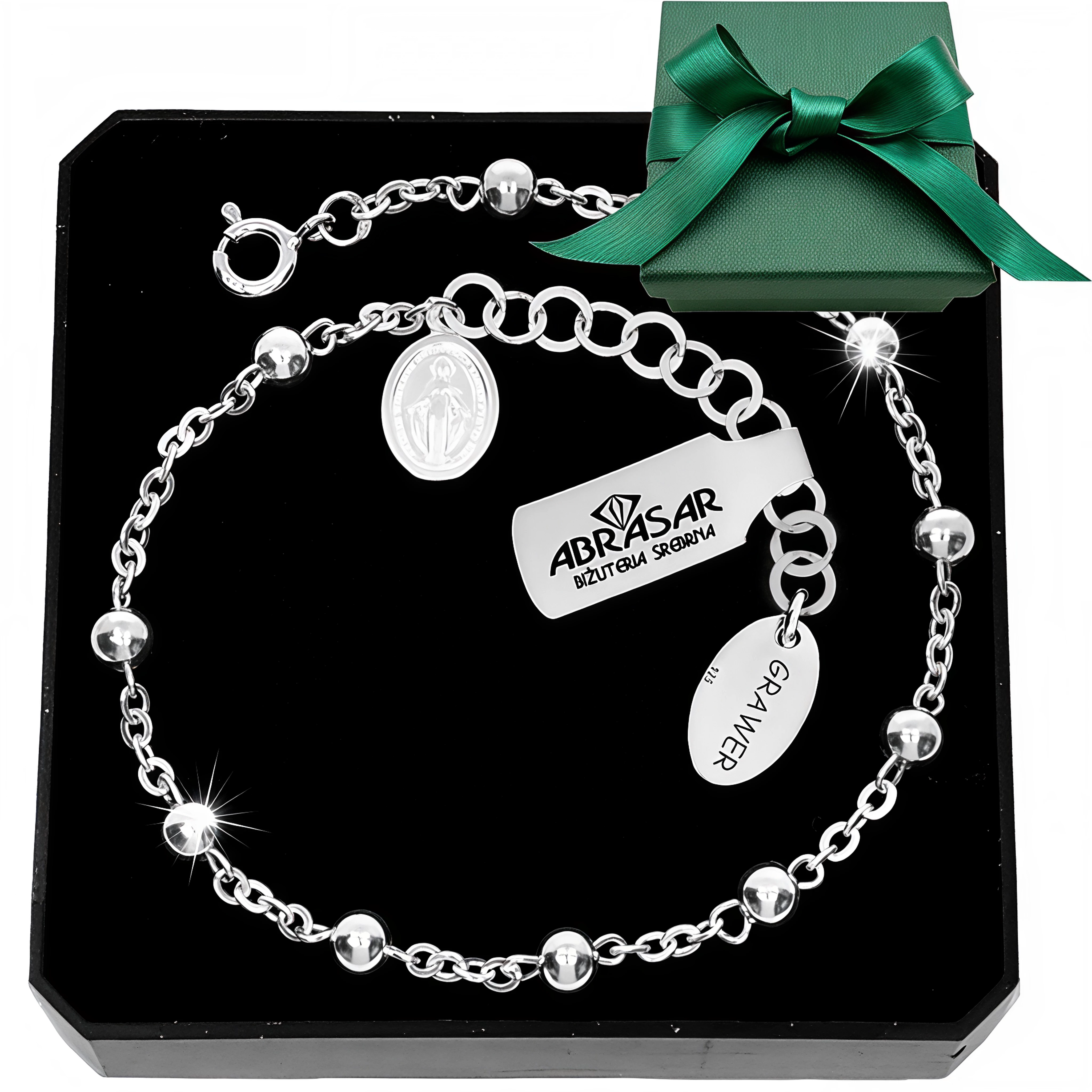 SREBRNA BRANSOLETKA RÓŻANIEC DZIESIĄTKA + GRAWER pr.925