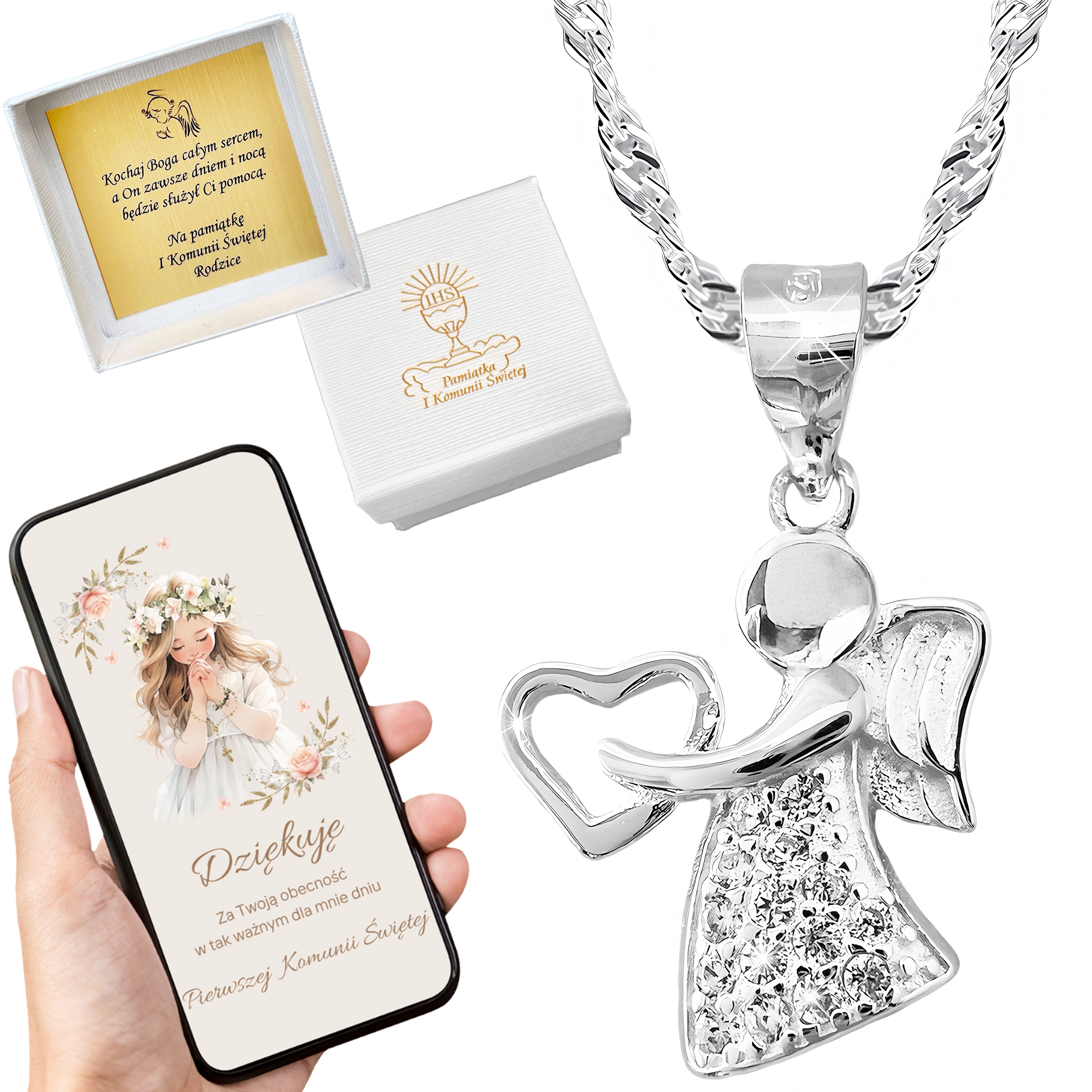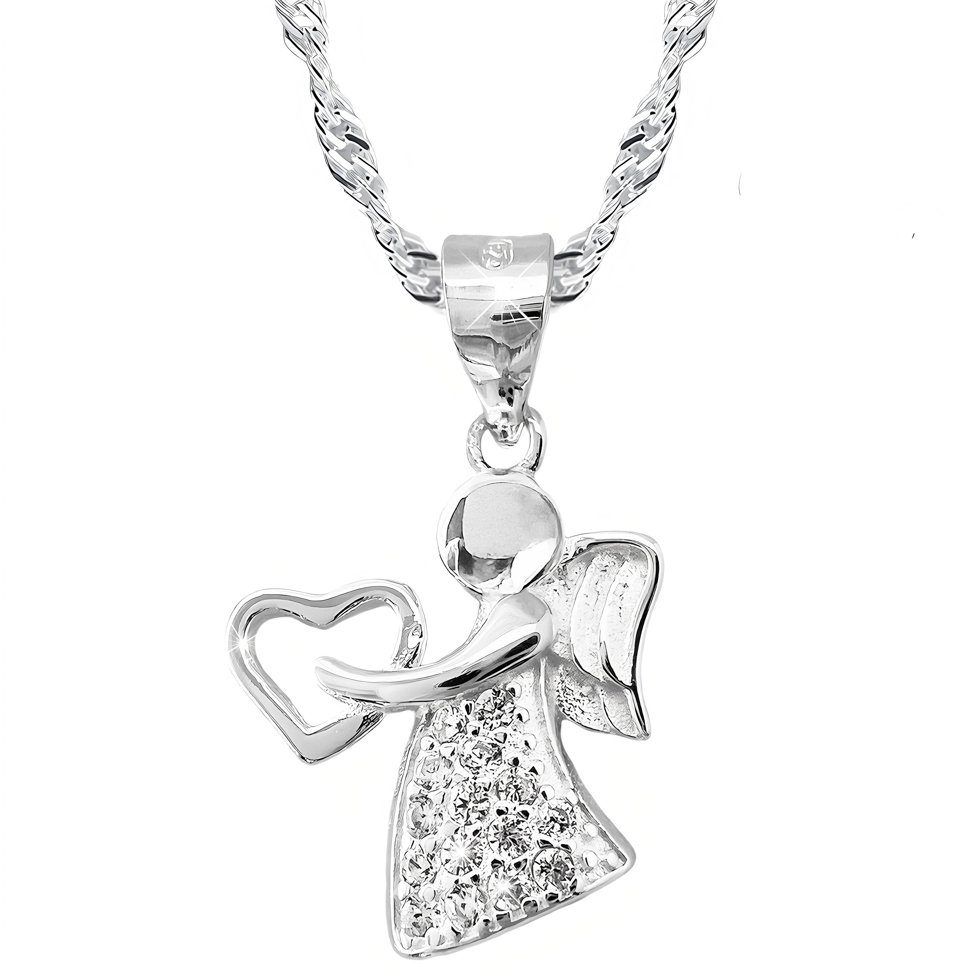 SREBRNY ŁAŃCUSZEK I ANIOŁEK Z CYRKONIAMI SREBRO 925