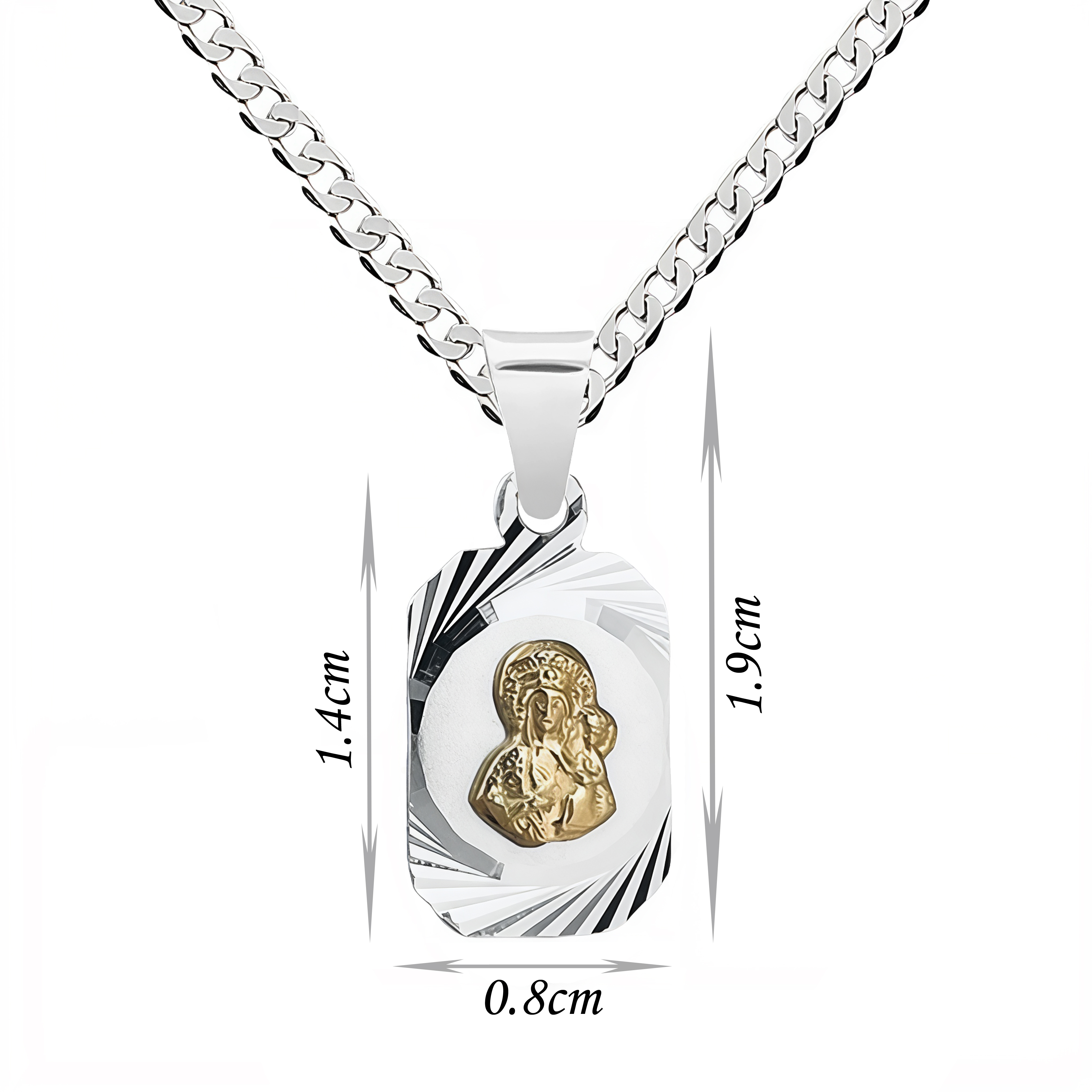 ✴️Wymiary medalika: 1.4 cm (z zawieszką 1.9 cm) x 0.8 cm
