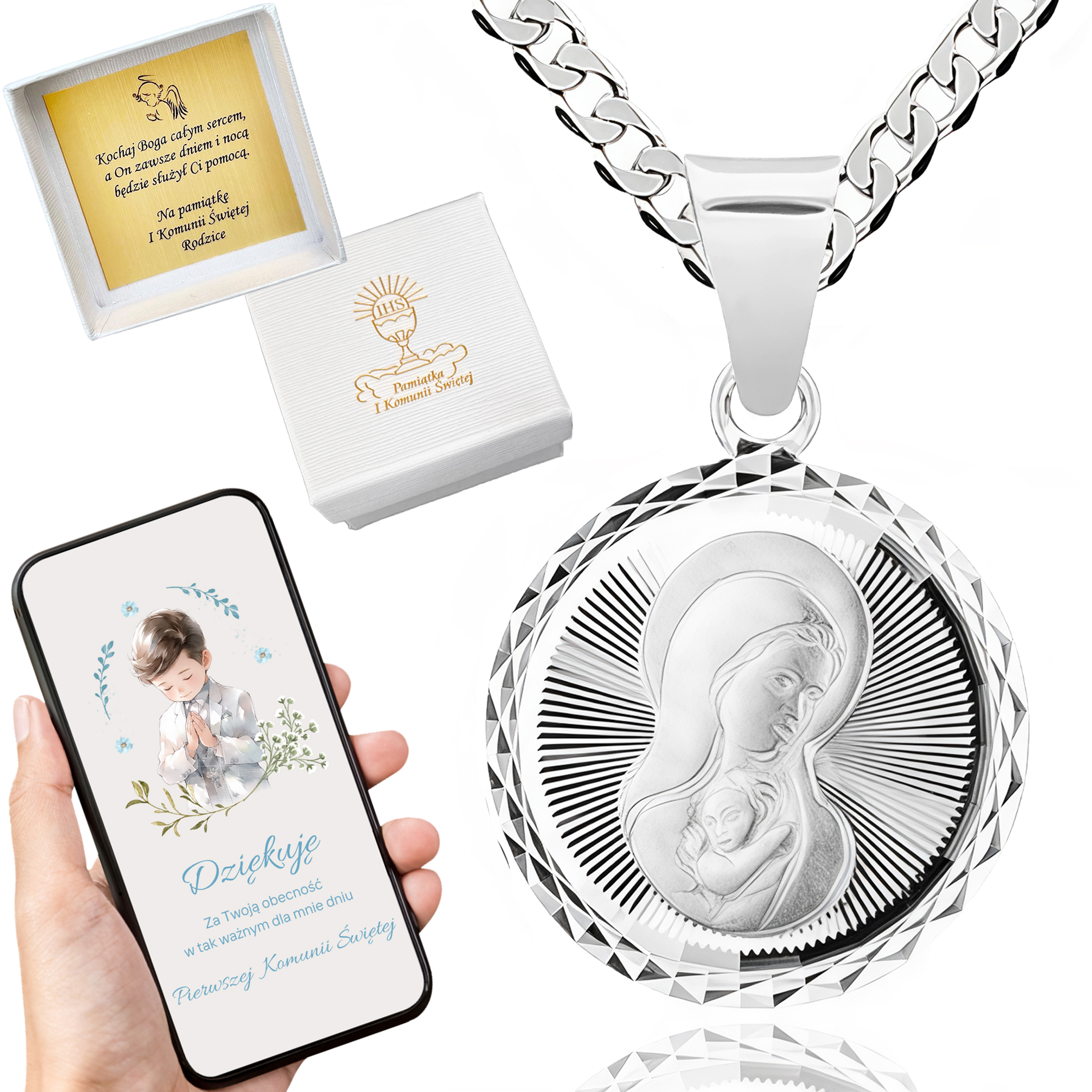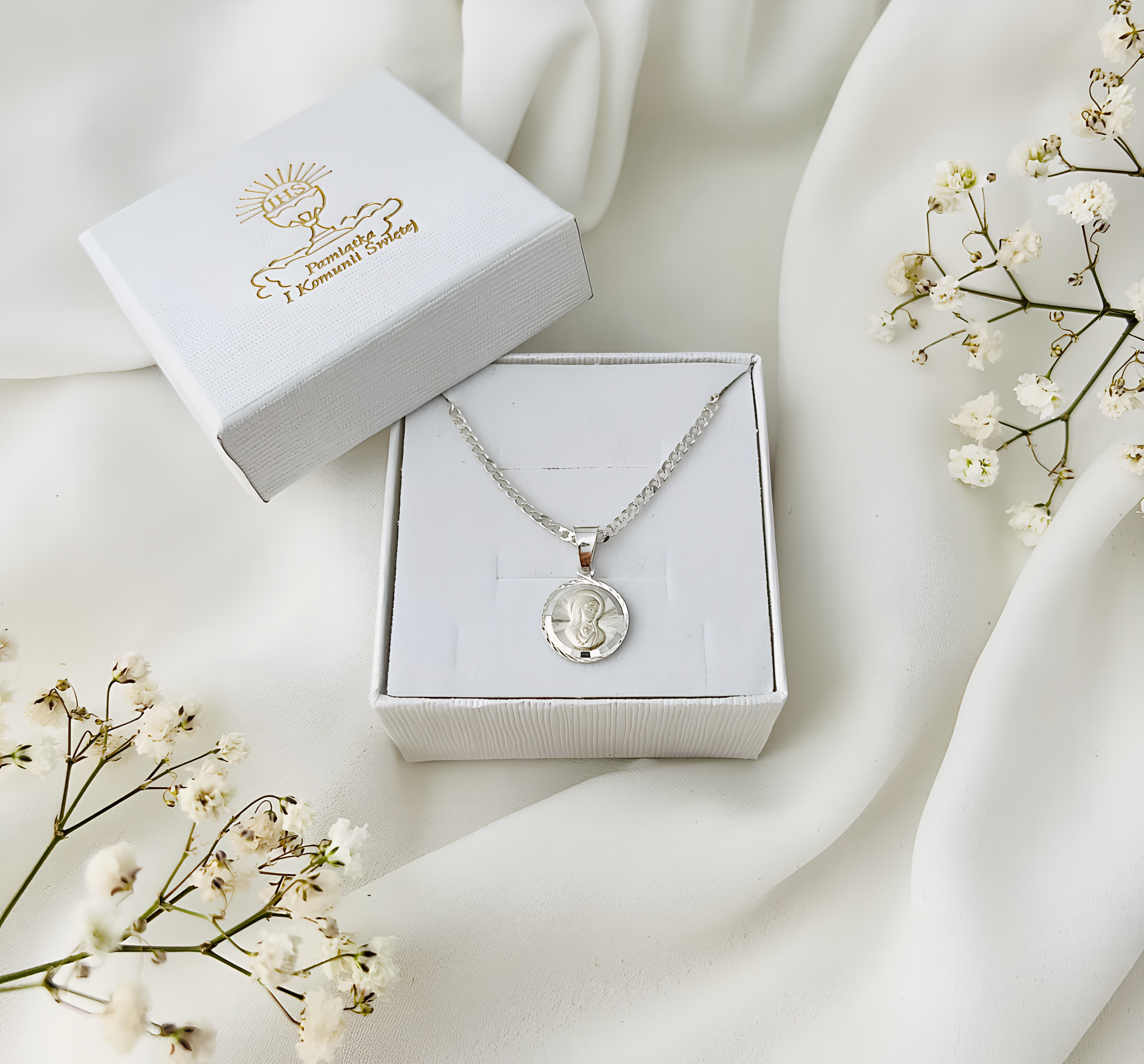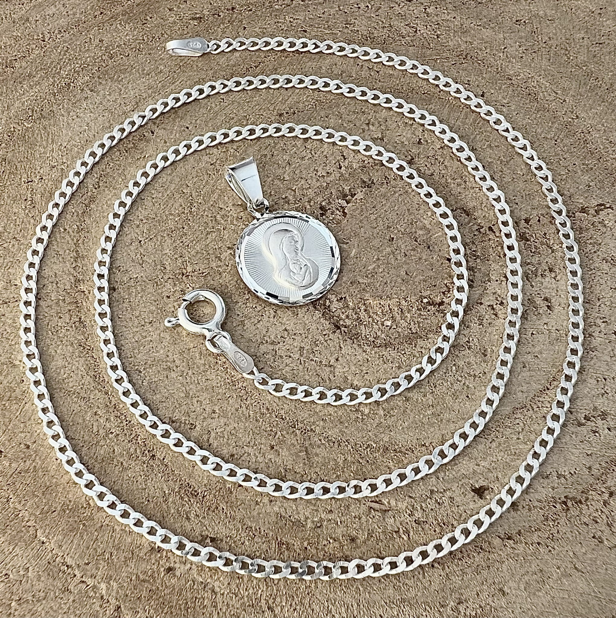 SREBRNY ŁAŃCUSZEK KOMUNIJNY I MEDALIK SREBRO 925