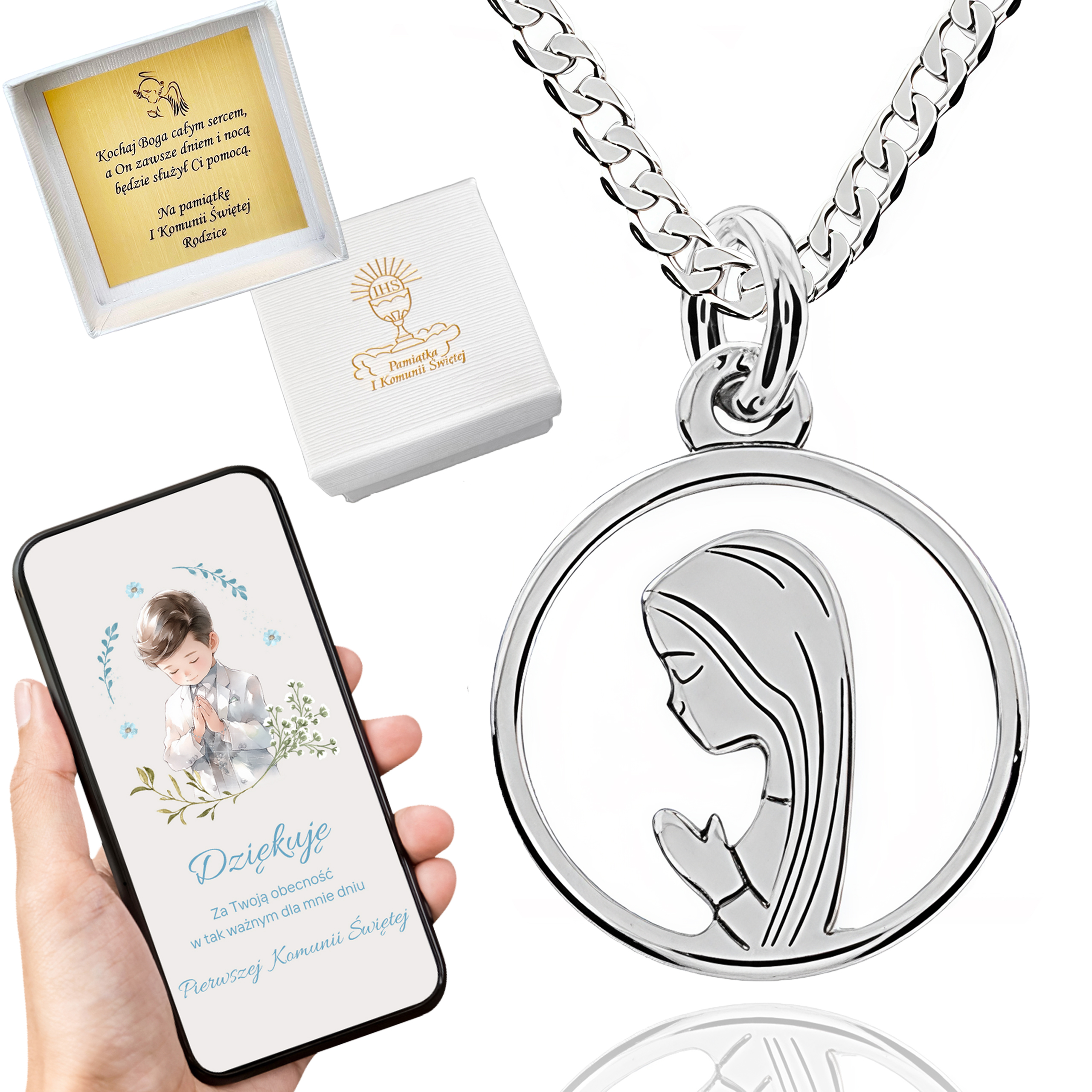 SREBRNY ŁAŃCUSZEK KOMUNIJNY I MEDALIK SREBRO 925