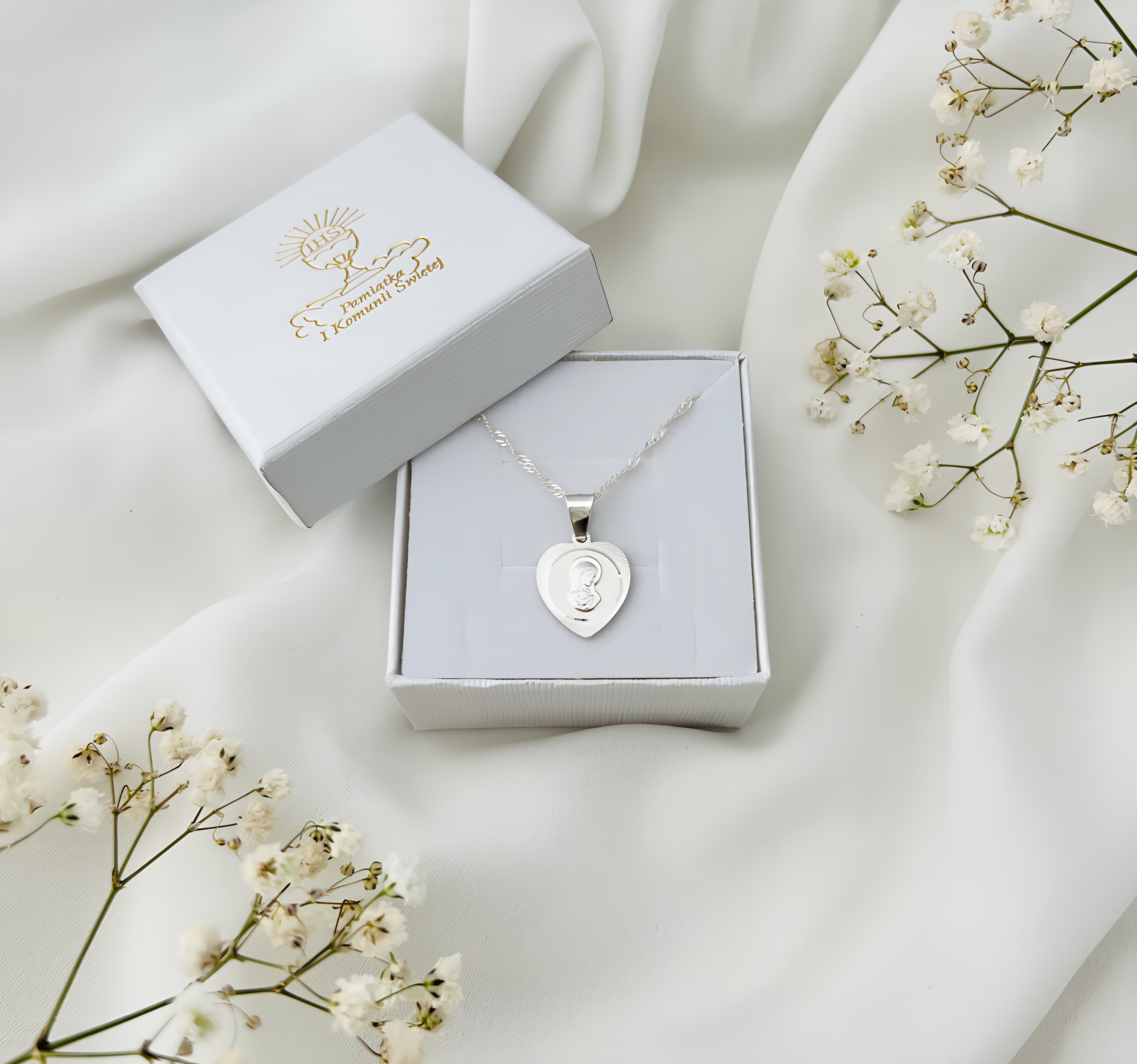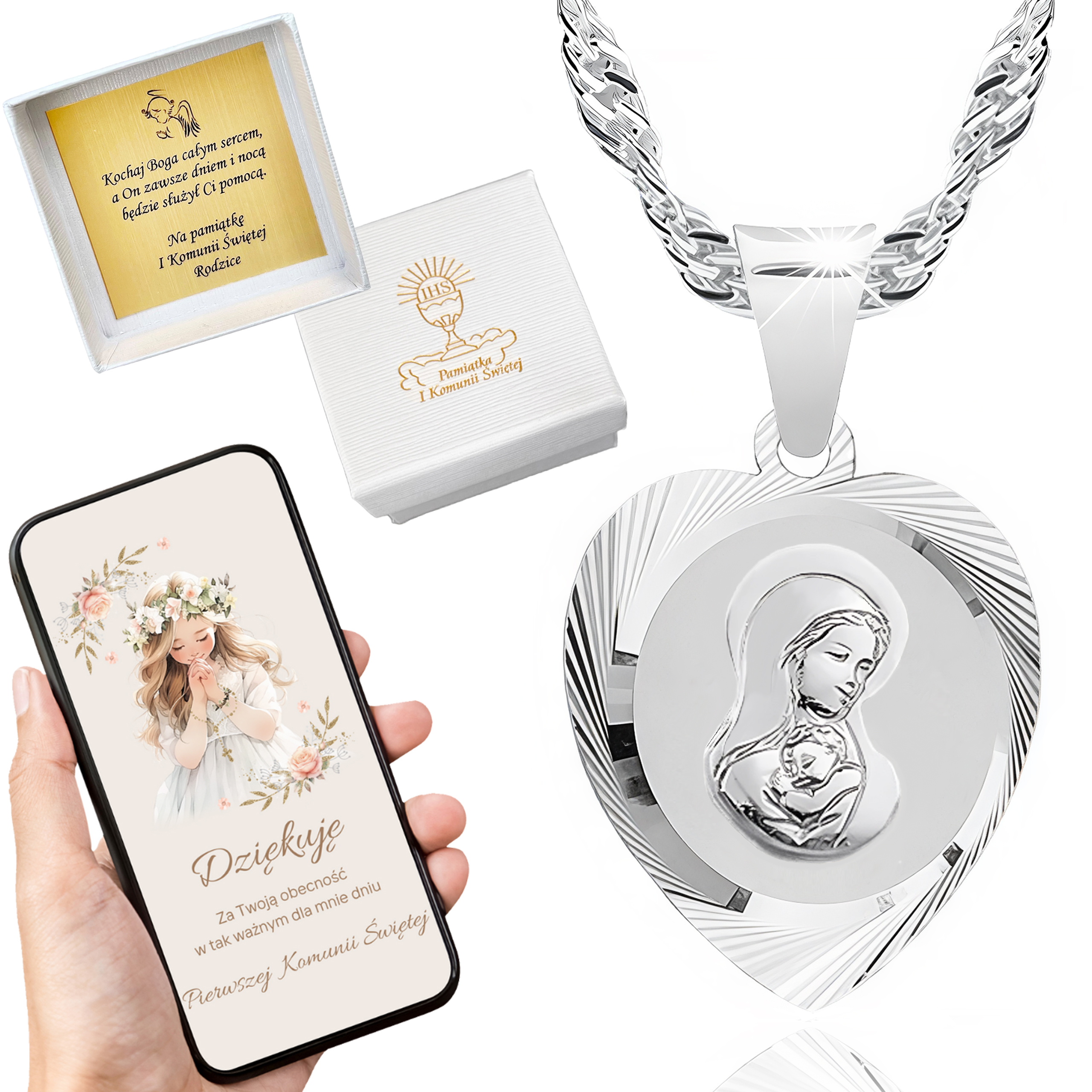 SREBRNY ŁAŃCUSZEK KOMUNIJNY I MEDALIK SREBRO 925