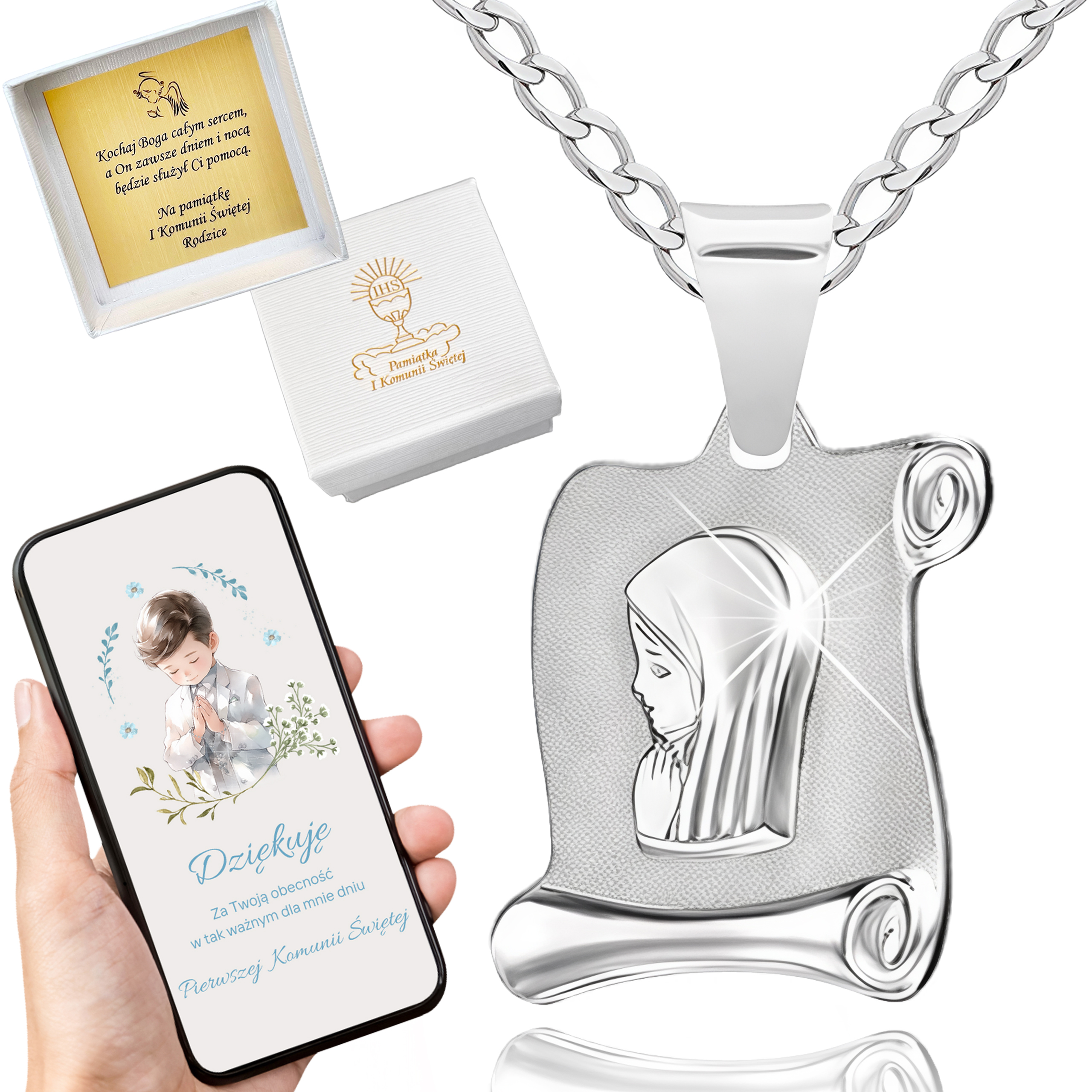 SREBRNY ŁAŃCUSZEK KOMUNIJNY I MEDALIK SREBRO 925